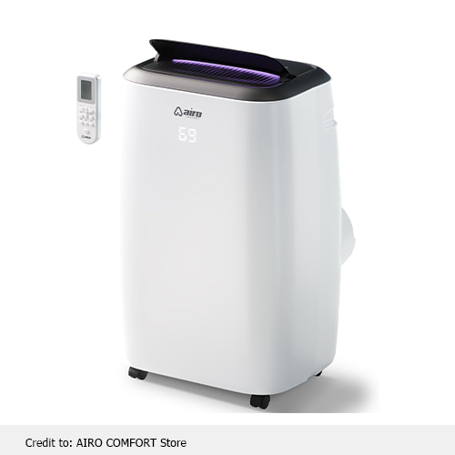 Clear and excellent LED display that can be turned on or off for sleeping. To control the timer, model, speed, and power function without any problem, it features a digital touch button. The Airo Comfort’s quiet portable AC is easy to install, but also, due to its wheels, it can be moved around the room easily.