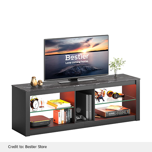 Bestier is a well-known brand for its functional, modern designs. Their modern LED TV stand is equipped with 22 built-in dynamic mode RGB lights. You can add a beautiful piece of furniture to your home, best for occasions like birthday parties or friends’ reunions. Make your special days more exciting with these 22 dynamic RGB lights. Adjust lighting according to your energy and create an enjoyable atmosphere. Anti-tip kits ensure kids’ safety, making them an ideal choice for families. The Bestier LED stand table comes with two tempered glass shelves. Make your things more magical with its adjustable glass shelves.
