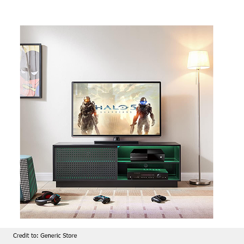The Generic gaming LED TV stand with mesh front panels accompanied by RGB LED lights would make an attractive and eye-catching addition to your entertainment or gaming setup. This piece of furniture complements your room with its mesh finish and geometrical design front panel. The mesh design is optimized to improve airflow for cooling gaming consoles and electronics. The built-in RGB remote control LED light amplifies your entertainment room ambiance in many ways, like creating a radiant gaming atmosphere. It is designed to enhance your viewing experience. Each strip of light undergoes up to 3590 national-led lighting tests.