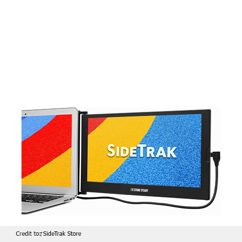 Sidetrak monitor outshines its compatibility and versatility, making it perfect for collaborations and meetings. It offers adjustable settings like brightness, volume, and display. Whether you are a student or a professional, this attachable monitor allows multitasking. Making it a practical solution for travelling or managing remote jobs. This dual screen is powered by DisplayLink software, recommended by our experts for its productivity and convenience.