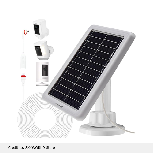 In conjunction with these features, it is advised to remove the waterproof ring on the DC cable from the Ring Stick Up Cam Solar before connecting it to a ring or security camera. Additionally, it has a unique construction and design. Moreover, it is particularly designed for the Ring Spotlight Cam and the Ring Stick Up Cam. It is highly compatible with the spotlight ring cameras and battery. The SKYWORLD solar panel is highly recommended for its efficient working and its unique construction, and its built-in features.