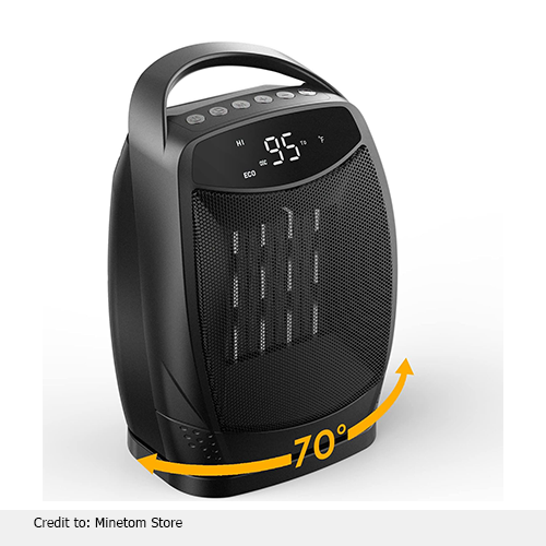 Further, this small heater provides multifunctional settings. The economical, 750W and 1500W heating levels provide adjustable settings. In particular, the optimal temperature of your room will be set economically with ECO mode. The desk heater can also function as an oscillating fan. The electric heater is highly recommended by our experts for its energy-saving features, quietness, and an HD display.