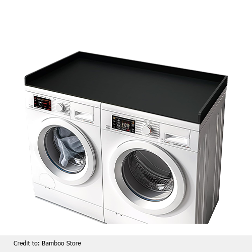 Overall, the black washer and dryer countertop is a conveniently engineered smart product, ensuring incredible performance and securing you from any harm or injury with an anti-falling support base, made of silicone to provide stability. The overall design offers maximum space for you to keep different things. It is the best choice for everyone due to its extra room for multifunctional purposes, extra comfort, and assistance in your laundry tasks. The extraordinary design and versatile features, like a sleek aesthetic look and a perfect fit for laundry setups, make it an ideal recommendation by our experts.