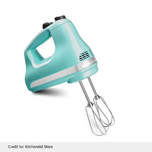The process of mixing, stirring, shaking, beating, and kneading things is easier with the use of a handheld Kitchenaid mixer. Cooking and baking are easier and take less time due to this best power-speed mixer that mixes things well in less time. You can take it anywhere because it is compact and lightweight. This Aqua Kitchenaid mixer contains 2 turbo beater accessories, 5 power speeds, a power hub, and push-button control.