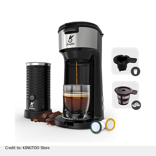 A single-serve coffee maker with K cup combo is ideal for preparing cafe-quality lattes and cappuccinos at home. You just add your favorite coffee into the brewer, fill the water tank with 6 to 14 ounces of water to control the strength. The Kingtoo single-serve coffee maker works with both ground coffee and capsules, and its quick heating feature lets you enjoy barista-quality coffee in just three minutes.