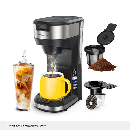 The Famiworth’s single-serve coffee maker with K cup combo consistently makes superb coffee, regardless of your mood. To make a strong coffee, press the strong button. Even if you might prefer an iced coffee some mornings, there are other days when a hot cup of coffee sounds wonderful. This iced coffee machine brews a powerful cup of hot coffee directly on ice.