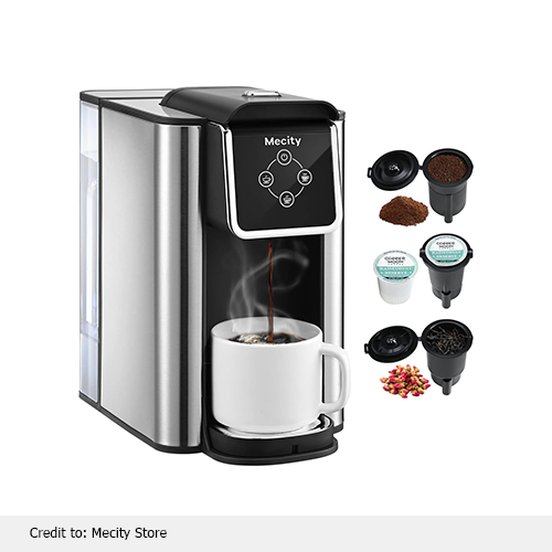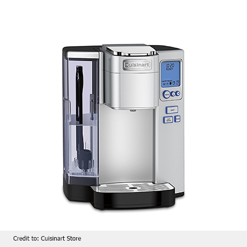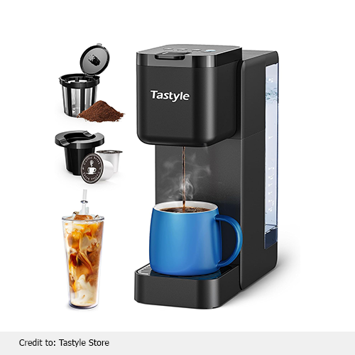 This coffee maker is more versatile with a capsule holder and reusable basket filter that comes with a secure hinged cover, and all accessories are dishwasher-safe for effortless maintenance. Through this coffee maker, you can also make iced coffee. If you do not know how to make cold coffee, this coffee brewer contains a step-by-step recipe to guide you. You can enjoy the convenience of brewing up to 4 cups without the hassle of continuous refilling due to the removable water reservoir. It is easy to maintain, use, and clean. For the ultimate cold coffee using K-Pods, blend 6 oz of ice with 60 oz of water.