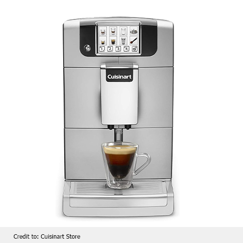 The Cuisinart espresso machine gives you the chance to enjoy the best coffee moments with fresh and tasty coffee. The product specializes in brewing your coffee in minutes, making your coffee perfectly smooth with a perfect texture. The espresso coffee appliance is available in both single and double programming, so you can use it however you want. Through this, you can get the best-tasting cups of steamed milk, latte, and cappuccino coffee and enjoy them. The coffee unit has an integrated whole-bean grinder that lets you brew up to five cups of coffee. The Cuisinart espresso machine has a touch screen controller system and is equipped with a clean function that allows it to perform an automatic cleaning.