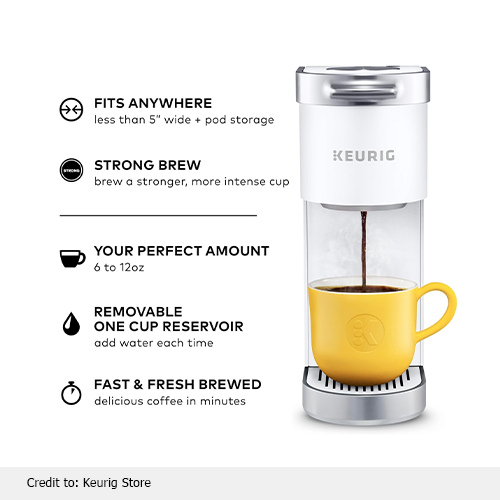 Everything keeps in one place, which saves counter space due to its pod storage design. For easy transport and to keep counters neat and organized, it featured cord storage. Moreover, this espresso-style white Keurig coffee maker is made for small spaces, which can fit almost anywhere. Using Keurig K-Cup pods, you can enjoy a brew from 6 oz to 12 oz of cup. You can enjoy a stronger and richer cup anytime.