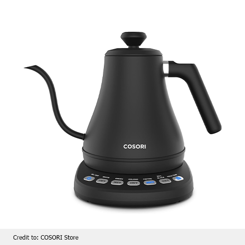 Robes Deez purchased this electric gooseneck kettle and reviewed, “So Much Better Than a Stove Kettle – Fast, Precise, and Super Functional.” Moreover, he reviewed that he loves his Cosori gooseneck kettle, and it has an easy-to-read display with intuitive controls and faster boiling. He highly recommends it too.
