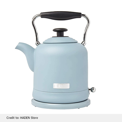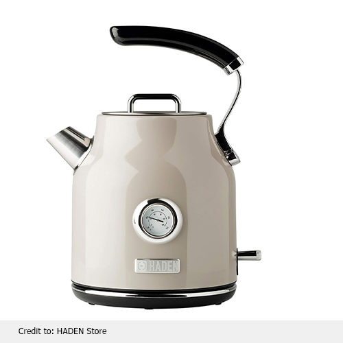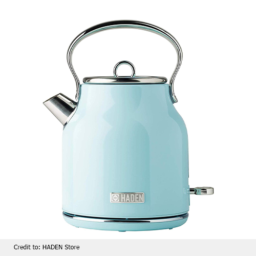 The kettles have a water-fill window to precisely measure the amount of water needed. The indicator light tells when the water is boiled, by turning it on. All the electric kettles from the Haden series also have a dry-boil protection feature. Another feature, named auto turn-off, turns off the kettle as soon as the water has boiled. The material used in these kettles is stainless steel, which poses no harm to health and offers durability. Thus Haden electric kettle is highly recommended by our professionals for its retro aesthetic look combined with modern functionality.
