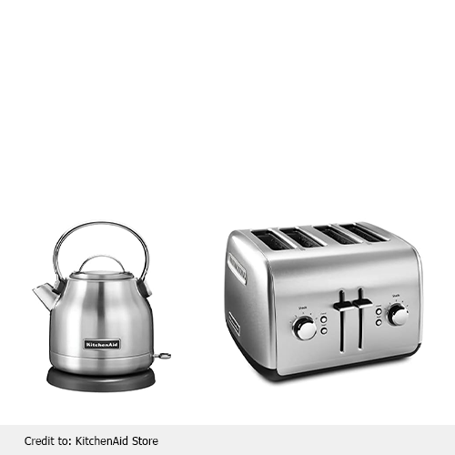 KitchenAid electric tea kettle provides the best combo of an electric tea kettle with its 4-slice toaster at a friendly cost, a great deal that you should have to reap the benefits. Both the toaster and the kettle have a stainless steel body, which is the best choice you can make for your kitchen to enhance its sophistication. In addition to these unique features, this electric tea kettle has a 1.25-liter capacity that can beat all other tea kettles.
