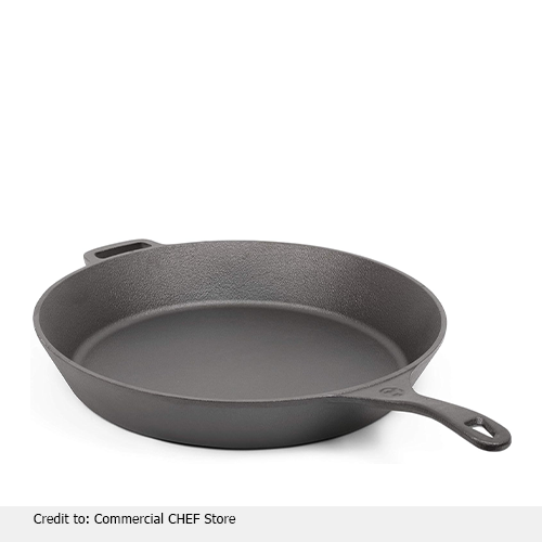 A Commercial Chef 15 inch cast iron skillet is used to cook delicious meals. It can be stored in the kitchen for everyday access. You can use it on stovetops, ovens, broilers, or a campfire. This Skillet has a non-stick surface and is heat-resistant, so you can cook your favorite foods. You can make a delicious meal with the help of a black frying pan. The best cast-iron skillet can also be used to brown foods on high heat, and even transfer food from the oven to the table without any hassle. Standard types of food can be prepared in this skillet; apart from this, it is perfect for making corn bread, fruta, and flat bread.