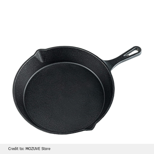 The iron pan has a glossy surface for cooking, and you can use it on both electric induction and gas stovetops. Plus, it can also be placed in the oven and can be placed outside on a gas cylinder. The iron skillet is the clear winner and recommended because it can stay hot for a longer time than other traditional pans and distributes the heat evenly.