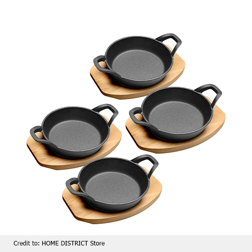 The 6 inch cast iron skillet has multiple uses, as you can use it as a small dish as well. In it, you can serve baked items, sell fajitas and other fast foods like a restaurant, and, in addition, cook a full meal in this iron pan. Apply a layer of oil on it to prevent rust, and wash the wood trivet when needed.