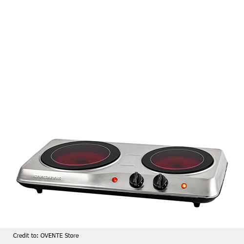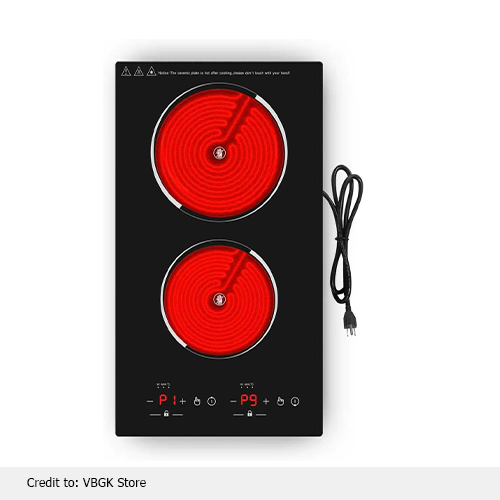 Infrared technology in an electric stove provides efficient heat without generating electromagnetic radiation and protects pregnant women. Having a combination of black glass and drop-in design electric stove provides an elegant and modern look. Thus, this 2-burner electric stove is highly recommended by our experts because of its elderly-friendly design. The knobs are present in this countertop stove, ideal for those having poor eyesight or elders. The dedicated knobs provide tactile and reliable cooking solutions. The stoves can easily be cleaned due to high-quality black glass, with damp cloths only.