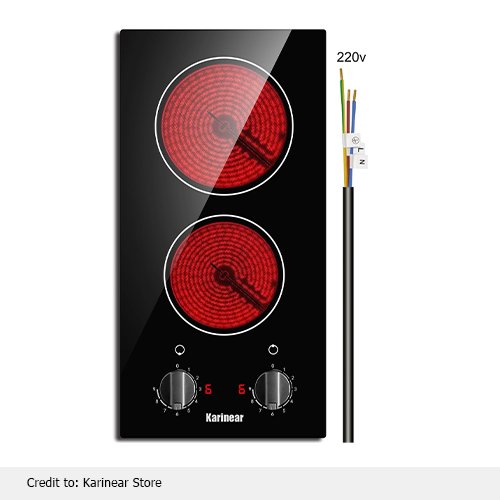 Karinear 2 Burner Electric Cooktop 12 Inch Built-in Electric Stove Top, 220v- 240v Radiant Cooktop with Residual Heat Indicator, Knob Control, Over-Temperature Protection, Hard Wire(No Plug)