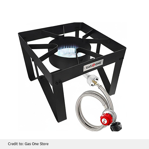 The Gas One single propane burner is the best for beginners and all types of outdoor cooking activities. If you are boiling, frying, and roasting your meals, you can rely on this gas burner to cook your food fast. Its low-to-ground reliable frame helps a lot with handling the different sizes of cooking pots. Our experts highly recommend Gas One single high-pressure propane burner, as its lightweight, flexible regulator and well-structured frame provide more safety, reliability, and efficiency while cooking inside or outside.