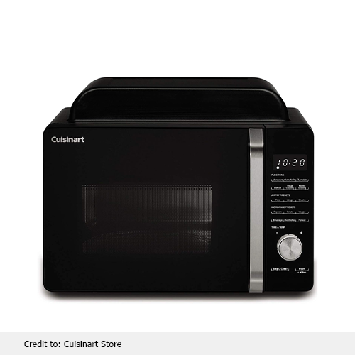 This Cuisinart Microwave is 3-in-1 means it can work as an air fryer, defroster, and microwave. This 3-in-1 microwave can bake, create, boil, defrost, cook, and reheat the meal. All functions are in one appliance, which is best for the kitchen in which it takes less space and makes the work of daily life easy. It has a fan and heater inside for the best cooking and the air fryer makes nutritional meals with your favorite taste without spoiling it by using less necessary oil. This microwave has touchpad buttons on which cooking settings are prominent, you can select one according to your recipe like frozen snacks, chicken wings, and French fries.