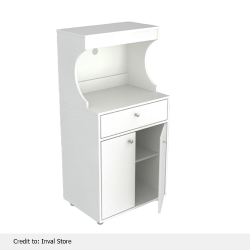 If you want to keep your kitchen neat and organized, this Inval microwave drawer cabinet is perfect. It has one wide open space that can fit home appliances like microwaves. There is one large drawer that can accommodate dishes, cookware, and snacks. Make sure everything is in its right place; clutter is organized. Furthermore, it is made with high-quality strong wood, and a durable melamine laminate finish makes this cabinet long-lasting.