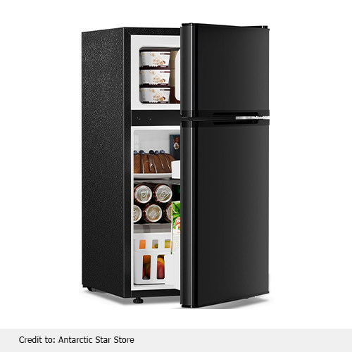 You can get the advantages of both cooling and freezing in one unit with the Antarctic Star mini fridge with freezer. Your fresh items stay crisp, and frozen items stay solid due to its two separate sections. Indeed, it is superb for snacks, drinks, or frozen meals. It is suitable for small apartments, dorms, or offices. The compact design makes it space-efficient and makes it accessible. It does not take up so much space, so it fits easily in a minimal space or beneath the counters. A temperature dial feature allows you to choose the perfect setting. It has three levels of adjustment from cold to coldest.