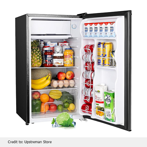 Cools efficiently, low noise operation, and uses less amount of energy are the key features of the Upstreman mini fridge with freezer. Quiet operation is perfect for study rooms and bedrooms. The reversible door design is an ideal feature: you can open the door either right or left. To keep the fridge stable on uneven grounds, adjustable leveling legs are useful. Freshen and cool your food all day with silent operation. Thus, on behalf of the mentioned features, including noiseless operation, space and energy saving features, experts recommend this Upstreman compact fridge.