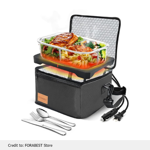 The Forabest portable mini microwave allows you to enjoy warm food anywhere. No matter where you are, this little microwave is compatible with 12V, 24V, 110V, and 220V outlets. It quickly warms your food: no need to stir, venting, or buttons. With 80W conduction technology, this little microwave heats food instantly and evenly. Meals can be reheated in this microwave in just 20 to 50 minutes. While simple dishes can be prepared in under 2 hours. This mini-microwave is best in situations when getting hot food is hard to find, such as camping, long drives, etc.