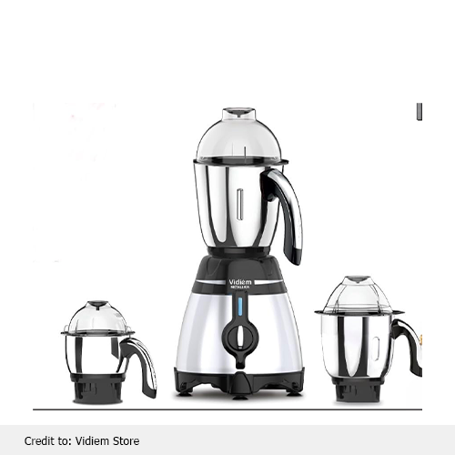 There are 3 square-sided jars of 0.5,1, and 1.5 liters to accommodate all your grinding ingredients with ease. The Tritan lids and stainless jars are leak-proof, too. Moreover, the durability of the blades never allows them to be replaced. Your lifestyle is highly improved by this mixer grinder USA. It preserves all the nutrients and juice out of even the hardest of fruits and veggies with perfect efficiency.