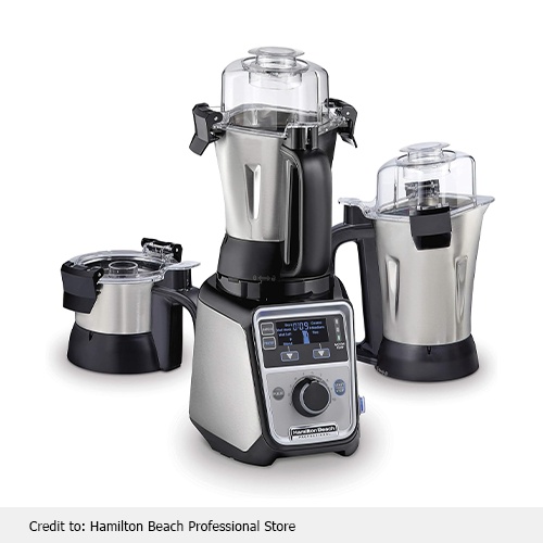 The Hamilton Beach mixer grinder USA is designed with professional expertise. It lets you grind and blend the toughest of ingredients like coconuts. The commercial-grade motor provides you with uninterrupted performance and resists overheating. An intelligent speed sensor is integrated into this wet grinder USA for ideal performance. Consistent results are provided by the 13 custom programs and infinite speed controls.