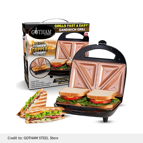 GOTHAM STEEL is offering a fast-flipping grilled cheese sandwich maker for valued and trusted customers. This machine is designed to assist you in making your favorite easy meal, including sandwiches. Now you can enjoy a simple cooking product and don’t need to follow lengthy recipes.