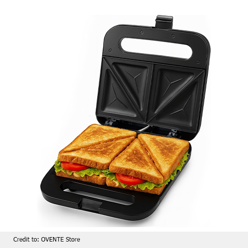 The sandwich maker is a great recommendation by our experts due to their lightweight and compact design, stainless-steel material, non-slip base design, and heat protection features.
