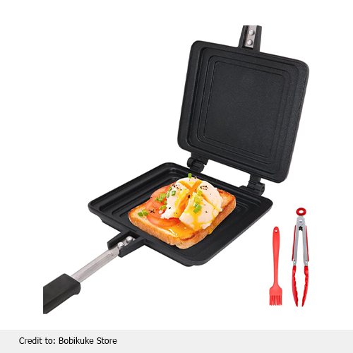 The grilled cheese sandwich maker offers more than one option; you can make 2 thick sandwiches or 1 large sandwich. The cap properly presses the food to accommodate the food pile equally, cooks on both sides, and has a lid to fix it during use to easily store food in a flat position.