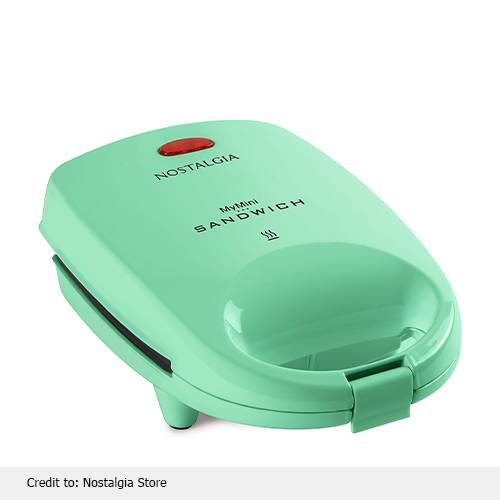 Nostalgia my mini personal is adaptable to be utilized to prepare omelets, waffles, and various other sweet dishes. Our experts recommend this sandwich maker due to its cool-touch handle, which ensures convenient lid opening/closing. A secure latch keeps the lid tight while preparing food. There is a button with a preheat indicator light that sends signals when to begin cooking or finish cooking.