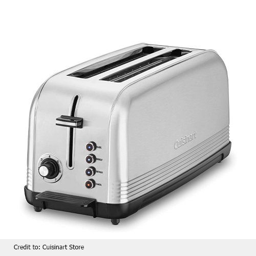 Plus, its compact design saves space, the crumb tray allows easy cleaning, and it’s built for daily use. Our experts recommend this slot toaster for its excellent blend of performance, ease of use, and style. It toasts evenly every time with advanced heating. The long slots fit large slices or bagels easily. With cancel, defrost, and reheat buttons, breakfast is quick and straightforward.
