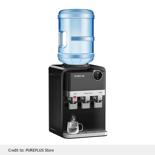 This base helps to keep the water clean in the countertop water dispenser and maintain the hygiene of your family. To make sure the prevention of dry burning while using the hot water, and check for rising bubbles in the water cooler, continue pressing until the water flow finishes. After finishing it turn on the heating power switch to prevent dry burning. The Pureplus countertop water dispenser is highly recommended by our experts because of its high-quality material, which results in low consumption of energy consumption.