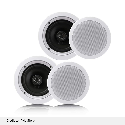These have a pair of polypropylene cones with cloth surround and polymer tweeter. This home and wall mount speaker provides balanced stereo sound for a better listening experience with full-range sound coverage. These are perfect for home and office use and enhance any environment with high-quality sound. Pyle’s ceiling speakers are highly recommended for their touch-controlled features easy-to-install, space-saving audio solutions that deliver great sound performance. Its design is very nice and blends seamlessly with any interior.