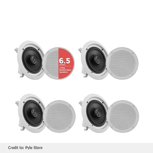 Pyle’s 2-way ceiling speakers for home theater setups bring quality sound to any room. They are mounted neatly without using floor or shelf space. Has a quick and easy setup in any room. This home speaker offers great sound without taking up floor space. Moreover, it has built-in round, stain-resistant speaker grills that blend with your home or office’s flush-mounted design for a neat look. This home or wall mount speaker provides good sound performance without losing style or quality. The compact, flat-mounted design offers easy installation on walls, ceilings, or pre-cut speaker spaces. This speaker ensures that you can note clearly any line of a song or movie dialogue.