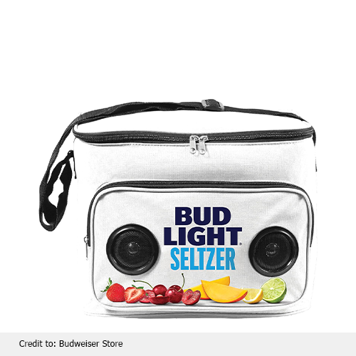 Bud Light Seltzer Soft Cooler Bag with Built-in Rechargeable Wireless Bluetooth Speakers Foldable and Portable Durable and Material Compatible for Smartphones, Tablets & MP3 Players