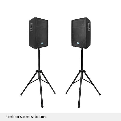 Furthermore, their raised stand design spreads sound evenly, reaching every seat with clear, balanced audio. Additionally, most models also feature efficient heat dissipation and long-hour power handling, which is why speakers with stand are trusted at long gigs, day-long conferences, or retail stores needing soothing music all day. Their solid build and wide sound reach make them perfect for tough setups.