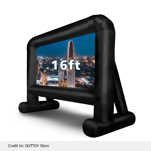 A rentable outdoor movie screen, a versatile entertainment gadget produced by Outtoy, is amazing for all users. Its extended screen of about 168 inches makes it ideal for a large audience with a 160-degree viewing angle. So, watch your favorite shows, sports, or even play games outside of the room with quality images and motions. The seam-free surface is highly absorbent and makes it vibrant. The inflatable design is convenient is classy for an outdoor fun time, and easy to put into a backpack. Made of good-quality polyester fabric, it can easily fold or wash without any damage or creases.