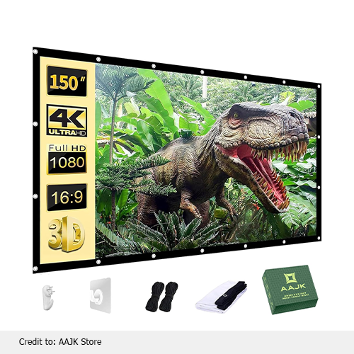 The Aajk rent outdoor movie screen is designed as an excellent gadget for enjoyment, manufactured by the Yuao company. With soft-touch white material, a smooth, matte finish, a compact movie projector screen is made for you, along with bright, sharp colors for a magical viewing performance. A creatively made outdoor movie screen is designed with a 150-inch display. You can operate it manually for your convenience indoors or outdoors, but it fits outdoors more easily. It has a 16:9 aspect ratio to deliver a realistic world of experience like sports, thrill, and all sorts of entertainment.